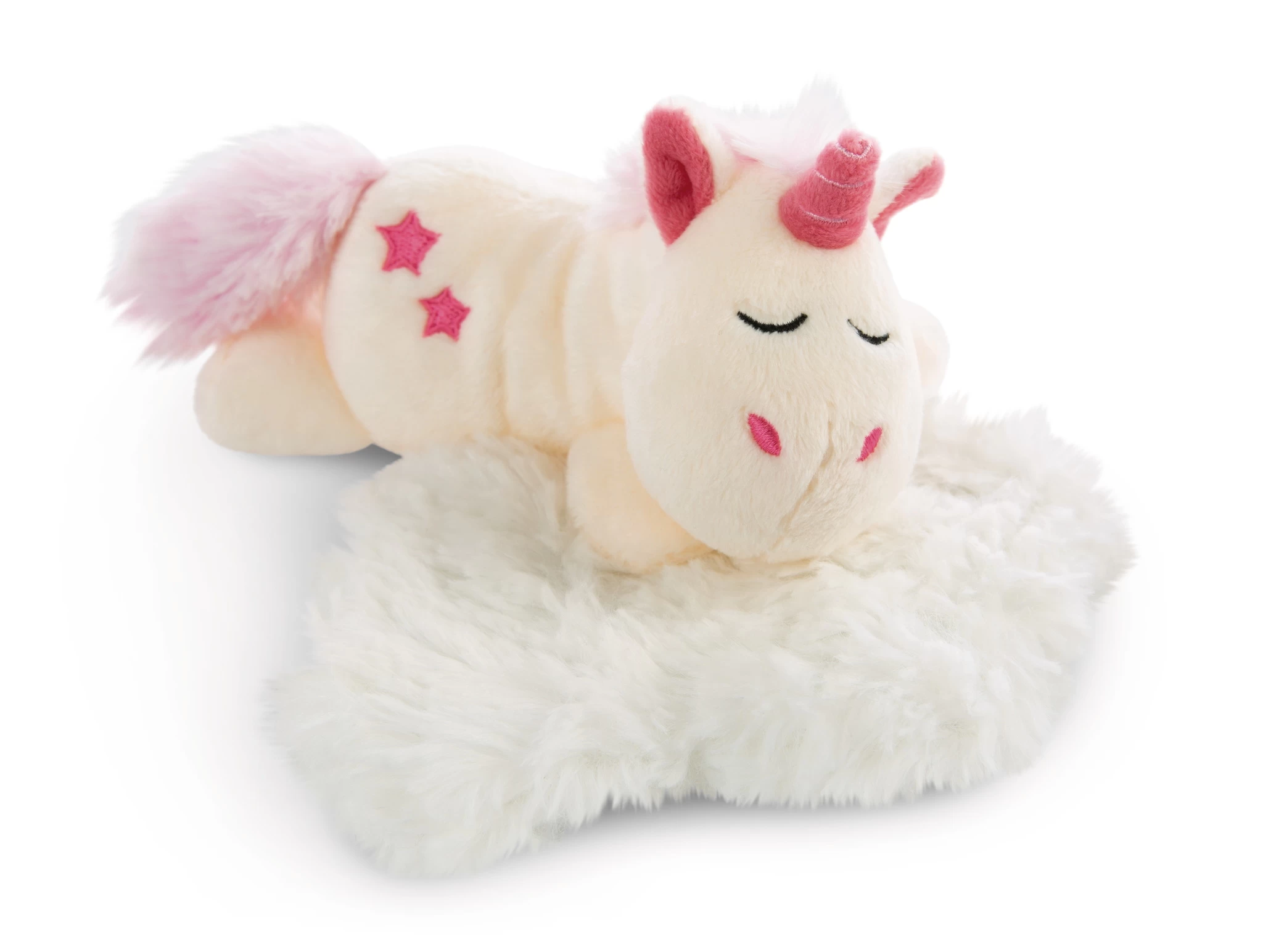 Durch die äußerst ansprechende Gestaltung mit regenbogen-funkelnder Metallic-Folienbedruckung bei gleichbleibender Flauschigkeit, laden die beiden Einhörner zum Träumen und Schmusen ein.