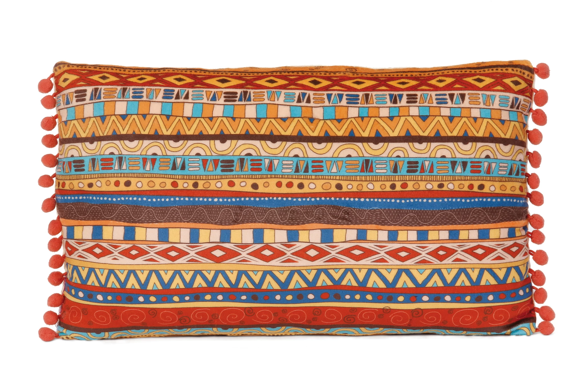 Detaillierte Charakter-Applikation mit dekorativer Bommelbordüre,Rückseite mit Musterdruck.